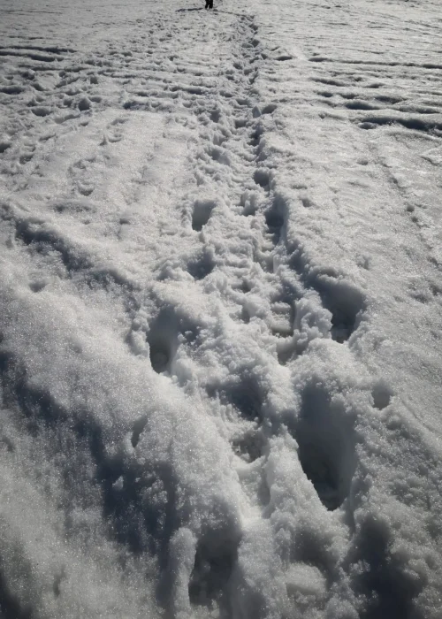 Și dacă zăpada e precum nisipurile mișcătoare, neștiind niciodată când îți va înghiți un picior sau poate pe ambele, reușind să te menții deasupra ei doar aplatizându-ți câmpurile, mergând chiar și virtual în patru labe, așa cum ai face-o pe pojghița subțire de gheață de pe un lac, merită să vezi cât ești de greu, merită să te târăști deasupra ei, să-i ghicești adâncimea și tăria sau rezistența ei.